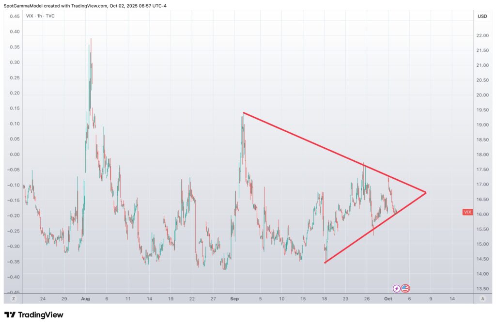 Patrząc głębiej w mechanikę – krzywa kontraktów VIX znajduje się w klasycznym contango, a nawet ma wyraźnie wklęsły kształt. Oznacza to, że krótkoterminowa zmienność jest tańsza od tej wycenianej w dalszym horyzoncie.