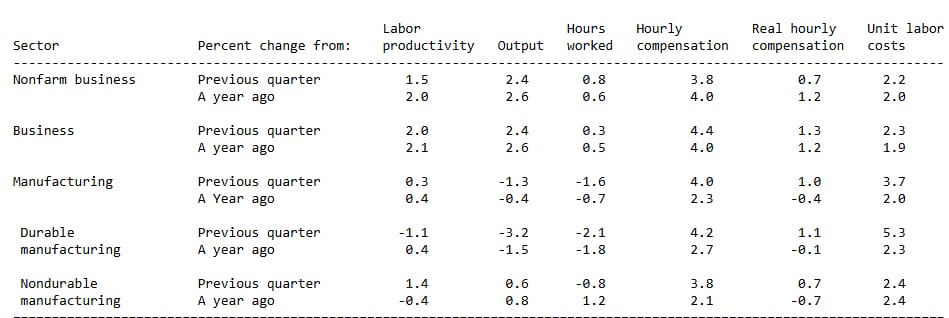 Zrewidowana rzeczywista produktywność w USA: 1,5% (prognoza 1,2%, poprzednio 1,2%)