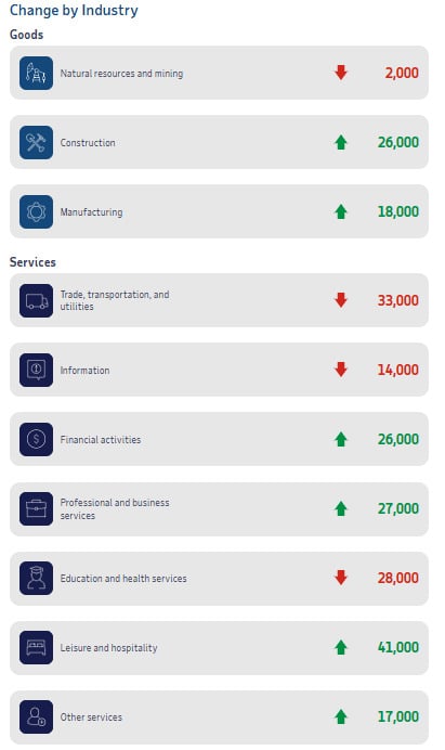 Zatrudnienie wzrosło w sektorach: konstrukcyjnym, produkcji, finansowym, biznesowym i hotelarstwie. Ale wzrost nie skompensował spadku w istotnych sektorach jak wspomniany transport, usługi pożytku publicznego. To kolejne, słabsze dane ze Stanów Zjednoczonych.