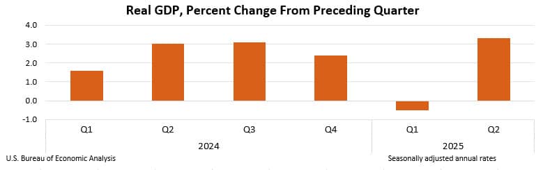 Po nieoczekiwanym spadku PKB o 0,5% w pierwszym kwartale 2025 roku, najnowsze dane sugerują, że gospodarka USA wraca na ścieżkę wzrostu. Druga wstępna szacunkowa wartość wzrostu PKB w kwietniu–czerwcu wyniosła 3,3% w ujęciu rocznym. Przebiła też wcześniejsze prognozy analityków, którzy zakładali 3,1%. To wyraźne odbicie jest napędzane głównie przez konsumpcję i spadek importu, który w krótkim terminie działał niczym katalizator dla krajowego produktu. Wall Street zareagowało wzrostem, także kryptowaluty notowane są wyżej.