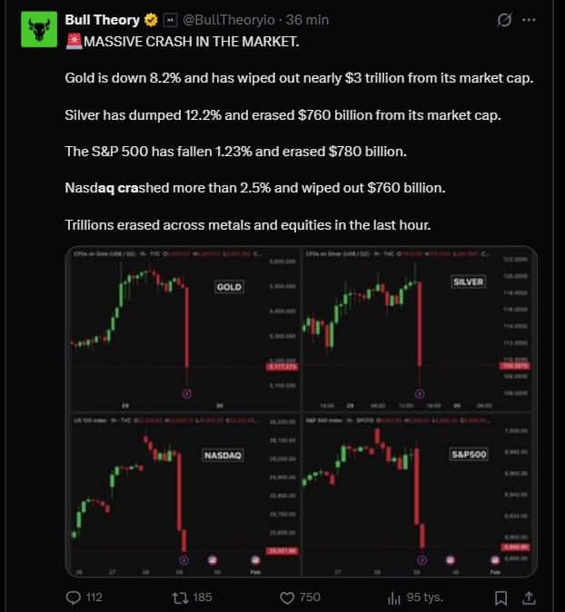 Ponieważ rynki dziś to system naczyń połączonych, na spadkach indeksów korzysta amerykański dolar, a 'zatłoczone trejdy’ w tym atomowo rosnące w ostatnim czasie złoto i srebro – notują spadki. Co szczególnie istotne dla kryptowalut – Bitcoin spada do 84,5 tys. dolarów… Tym samym kryptowaluta cofnęła się do poziomu panicznych spadków z listopada. Co wywołuje tej skali niepokój w USA?