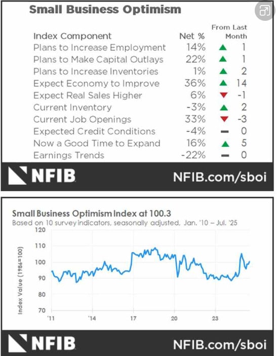 Główny ekonomista NFIB, Bill Dunkelberg, komentował: „Optymizm w lipcu nieznacznie wzrósł, ponieważ właściciele firm zgłaszali bardziej pozytywne oczekiwania co do warunków biznesowych i możliwości ekspansji. Choć poziom niepewności wciąż jest wysoki, kolejne sześć miesięcy powinno – miejmy nadzieję – przynieść przedsiębiorcom więcej jasności, zwłaszcza w miarę pojawiania się efektów decyzji Kongresu o utrwaleniu 20% ulgi podatkowej dla małych firm oraz ostatecznego kształtu polityki handlowej. Tymczasem jakość siły roboczej ponownie stała się głównym problemem Main Street.”