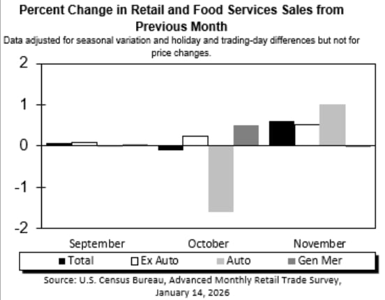 Listopadowe dane o sprzedaży detalicznej w USA pokazują, że amerykański konsument wciąż trzyma się zaskakująco dobrze, mimo wysokich stóp procentowych i coraz bardziej restrykcyjnych warunków finansowych. Wartość sprzedaży w handlu detalicznym i gastronomii sięgnęła 735,9 mld dolarów, rosnąc o 0,6 procent w ujęciu miesięcznym i o 3,3 procent rok do roku. To solidny wynik, zwłaszcza biorąc pod uwagę, że dane nie są korygowane o zmiany cen.