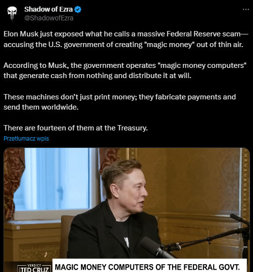 „14 komputerów drukuje dolary na potęgę.” Musk ujawnia największą tajemnicę Waszyngtonu?