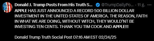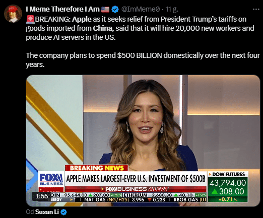 Co ciekawe, wiadomość o inwestycji pojawiła się zaledwie kilka dni po spotkaniu Tima Cooka z Donaldem Trumpem. Były prezydent od dawna domaga się od gigantów technologicznych większego zaangażowania w USA i nie krył dumy z ogłoszenia Apple. „To zasługa naszej polityki. Gdyby nie my, nie zainwestowaliby nawet centa” – napisał Trump w mediach społecznościowych.