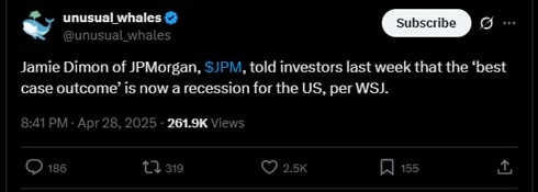 Kolejni eksperci prognozują, że obecna strategia Donalda Trumpa skończy się recesją. Pod koniec marca Lim Hui Jie, ekspert rynków finansowych CNBC, ocenił, że „widmo recesji wisi nad rynkiem niczym miecz Damoklesa. Pytanie brzmi, czy miecz ten faktycznie obniży zwroty z rynku, a jeśli tak, to kiedy?”. Podobne zdanie na ten temat wygłosił kilka dni temu Jamie Dimon. CEO stwierdził, że recesja, to „najlepszy scenariusz”, jaki może spotkać gospodarkę USA.