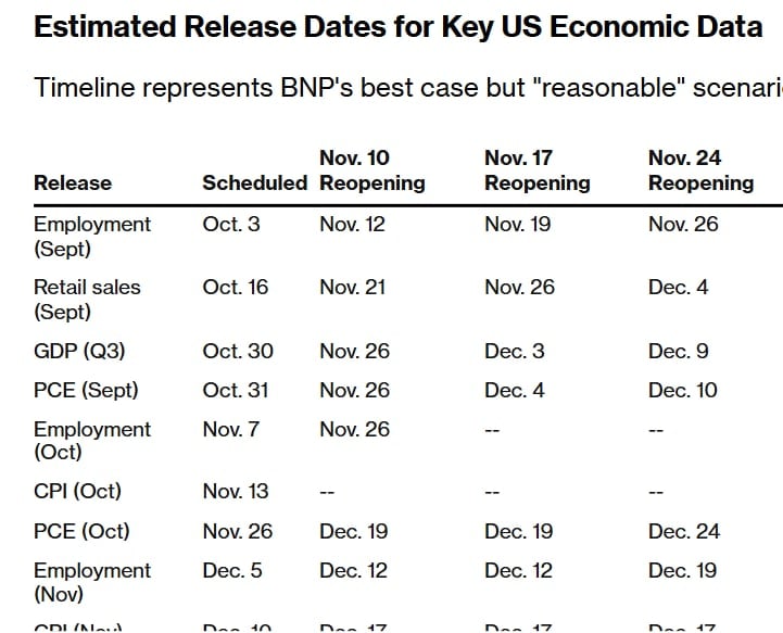 Kiedy w końcu biura statystyczne ponownie otworzą drzwi, na rynek spłynie prawdziwy potop informacji. Analitycy z Deutsche Bank, cytowani przez agencję Bloomberg ostrzegli, że inwestorzy powinni przygotować się na 'gwałtowny napływ zaległych danych’. Jeśli historia z 2013 roku ma być jakimkolwiek punktem odniesienia, pierwsze trafią raporty z rynku pracy. To one zwykle stanowią podstawę decyzji Rezerwy Federalnej.