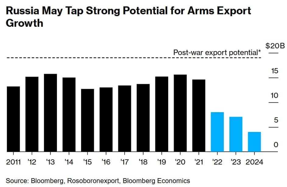 Putin próbuje jednak przekuć militarną gospodarkę w źródło twardej waluty. Rosja, wciąż drugi największy eksporter broni na świecie (po USA), ponownie wraca na targi zbrojeniowe w Azji, na Bliskim Wschodzie czy w Afryce. Rosoboronexport – państwowy gigant odpowiedzialny za 85% sprzedaży – chwali się portfelem zamówień wartym rekordowe 60 mld USD. Analitycy szacują, że w pierwszych latach po wojnie Moskwa mogłaby sprzedawać sprzęt o wartości 17–19 mld USD rocznie. To pieniądze, które mogą częściowo zasypać dziurę budżetową, ale nie wystarczą, by utrzymać całą machinę w takim tempie.