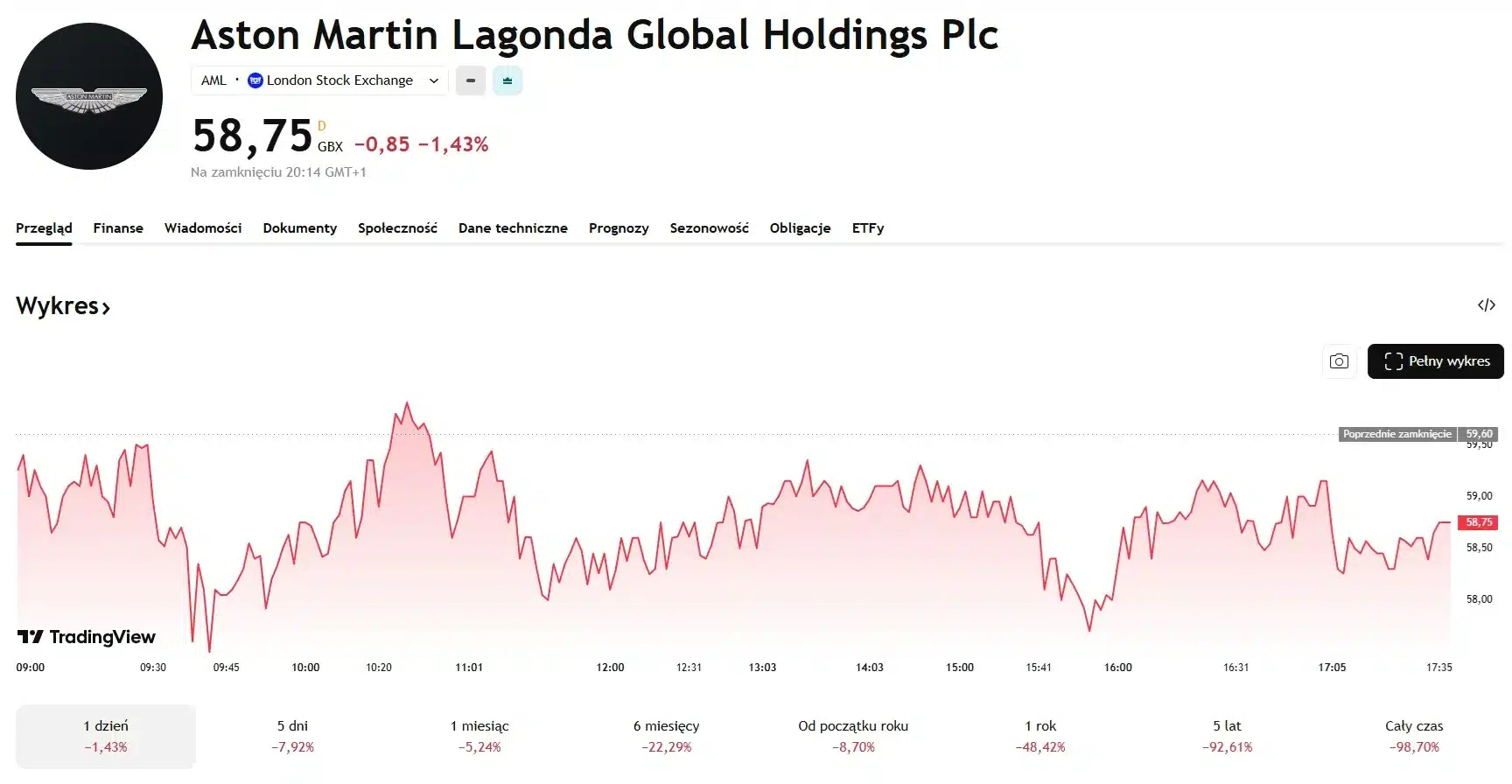 Jeśli spojrzymy na wyniki spółki z ostatnich miesięcy, to spadek i tak był dość łagodny. W ujęciu tygodniowym i miesięcznym akcje Aston Martin spadły odpowiednio o 7,92% oraz 5,24%. Tylko od początku roku gigant spadł o 8,70%. Z kolei przez ostatni rok spółka straciła na wartości aż 48,42%.