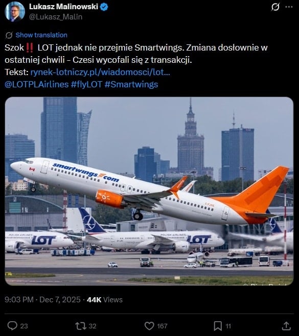 Jak każda tego typu transakcja, ewentualny zakup Smartwings miał swoje wady i zalety. Jednak eksperci oceniają, że transport lotniczy w Polsce stracił dużą szansę na rozwój. Przede wszystkim dlatego, że firma jest w całkiem dobrej kondycji. W 2024 roku linie Smartwings przewiozły łącznie około 6,5 mln pasażerów. To ponad 20% więcej niż w poprzednim roku. Ponadto firma obsługiwała loty z kilku europejskich stolic.