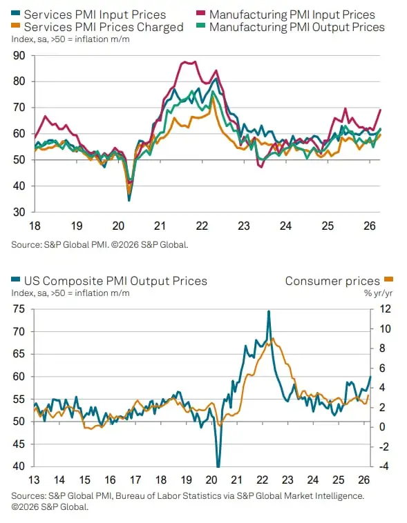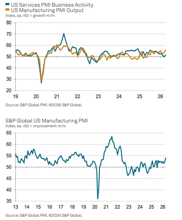 Kwietniowy zestaw wskaźników S&P PMI dla USA przynosi wyraźny sygnał stabilizacji aktywności gospodarczej po zakłóceniach wywołanych napięciami geopolitycznymi. Dane wstępne znacznie przekroczyły prognozy Wall Street. Jednocześnie odsłoniły znacznie bardziej niepokojący trend. Mianowicie powrót presji inflacyjnej. Odbicie wzrostu nie ma charakteru równomiernego ani trwałego.