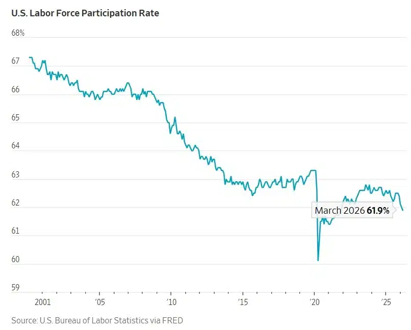 Wzrost siły roboczej w USA gwałtownie hamuje i w 2026 roku wg. kwietniowego raportu Fed może spaść praktycznie do zera. To poziom bez precedensu w nowoczesnej historii Stanów Zjednoczonych. Nie chodzi o cykl koniunkturalny, lecz o coś znacznie trudniejszego do odwrócenia: demografię i migrację. Przez ponad pół wieku gospodarka USA rosła przy średnim tempie wzrostu siły roboczej około 1,4% rocznie. Dziś ten silnik po prostu zgasł, pracuje coraz mniej Amerykanów. Poniekąd brzmi to jak temat statystyczny, ale konsekwencje sięgają dalej niż rynek pracy.