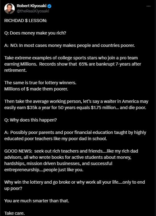 Także o ryzyku i o tym, jak biznes może być misją, a nie wyłącznie sposobem na spłatę kredytu. To właśnie ta wiedza – życiowa, praktyczna i czasem bolesna … Odróżnia finansowo wolnych od finansowo uwięzionych. W istocie pytanie brzmi: po co pracować całe życie albo wygrać fortunę, by ostatecznie pozostać z niczym?