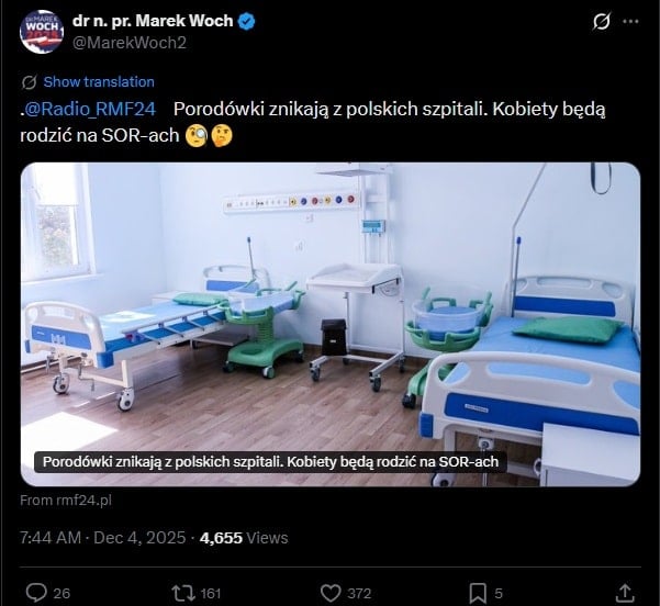 Z powodu braku finansowania szpitale w większości przypadków zamykają oddziały onkologiczne, zakaźne oraz położniczo-ginekologiczne. O cichym zamykaniu porodówek w Polsce mówiło się już od kilku miesięcy, ale dopiero teraz problem został nagłośniony. Obecnie w związku z brakiem pieniędzy na ich prowadzenie, szpitale mają organizować punkty rodzenia przy szpitalnych oddziałach ratunkowych lub w izbach przyjęć.