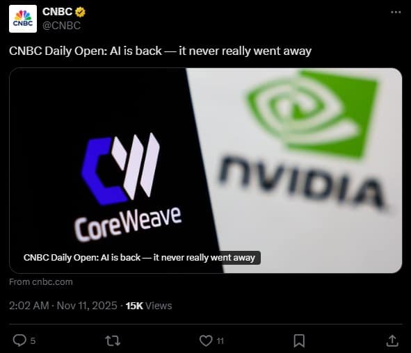 CoreWeave prognozuje, że przychody w 2025 r. wyniosą od 5,05 do 5,15 mld dolarów. To mniej od prognoz analityków, którzy wskazywali na poziom 5,29 mld dolarów. Po tych danych akcje spółki straciły na giełdzie w ciągu kilku godzin około 6%.