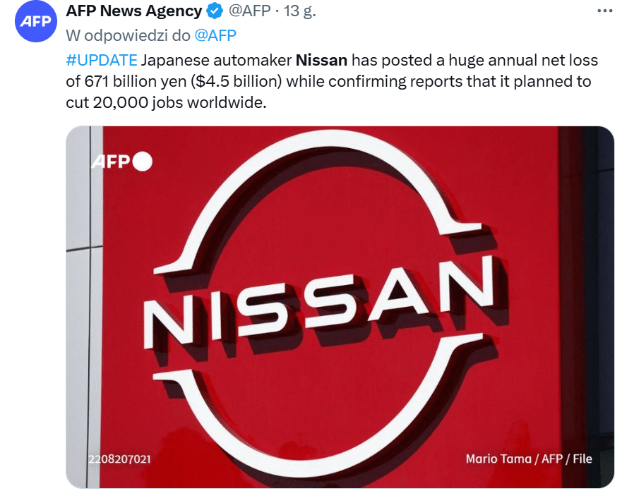 Tym bardziej, że to już druga podobna fala zwolnień. W listopadzie Nissan informował o 9 tysiącach etatów do likwidacji i planie ograniczenia produkcji o 20%. Nic dziwnego, że mówi się o kryzysie, który dopiero się rozkręca.