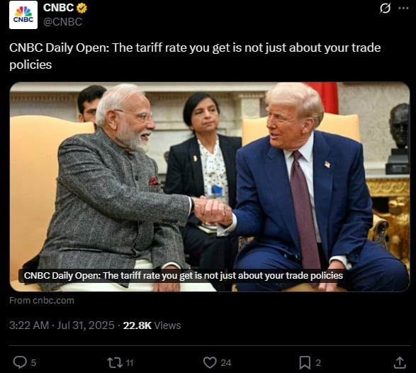 Znaczącym partnerem, z którym USA nie doszły do porozumienia, są Indie. W tym przypadku można mówić nawet o pewnym regresie. Stany Zjednoczone nałożył cło na towary z tego państwa w wysokości 25%, czyli więcej niż prognozowano. Pierwotnie obserwatorzy zakładali, że stawka będzie niższa. Nie dość, że cła są wyższe, to jednocześnie Indie otrzymały karę za kupowanie ropy od Rosji. Trumpowi nie podoba się, że Indie kupują od Rosjan surowce oraz sprzęt wojskowy.
