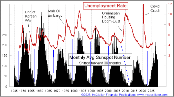 Obecny cykl plam słonecznych osiągnął maksimum w sierpniu 2024 roku. Przy zachowaniu historycznego opóźnienia oznaczałoby to, że stopa bezrobocia w USA może jeszcze rosnąć, z potencjalnym szczytem w okolicach drugiej połowy 2027 roku. McClellan podkreśla, że model nie działa z zegarmistrzowską precyzją co do miesiąca, ale w dłuższym horyzoncie okazywał się użyteczny jako narzędzie orientacyjne.