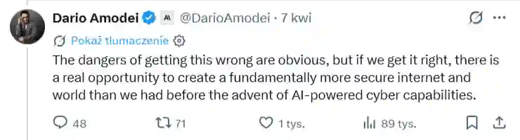 Biały Dom oraz dyrektor generalny firmy Anthropic, Dario Amodei, zasiedli do wspólnych rozmów w celu wypracowania porozumienia dotyczącego bezpieczeństwa sztucznej inteligencji oraz cyberbezpieczeństwa.