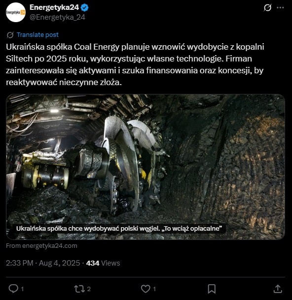 W tym roku swoją działalność miała zakończy prywatna kopalnia SILETECH z Zabrza. Jan Chojnacki, prezes spółki, w rozmowie z Pulsem Biznesu powiedział, że kopalnia eksploatuje resztki zasobów i z końcem 2025 roku całkowicie wstrzyma działalność wydobywczą. Tymczasem, jak ustalił portal, przejęciem udziałów i dalszym wydobyciem, zainteresowana jest ukraińska Coal Energy.