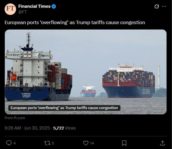 Politycy mają swoje postulaty i gotowi są dalej opierać się Trumpowi. Jednak firmy zajmujące się transportem i logistyką sygnalizują coraz większe problemy. Największe porty przeładunkowe w Europie zmagają się z ogromnymi trudnościami. Nawet w portach w Rotterdamie, Hamburgu i Antwerpii statki i kontenerowce czekają w portach na załadunek towarów po kilka dni. Caesar Luikenaar, dyrektor zarządzający WEC Lines, holenderskiej firmy żeglugowej, powiedział w rozmowie z Financial Times, że obecnie „wszystkie duże huby są przepełnione”. Według jego relacji wszystkie duże porty działają na maksymalnych obrotach, a i tak nie udaje się uniknąć opóźnień.