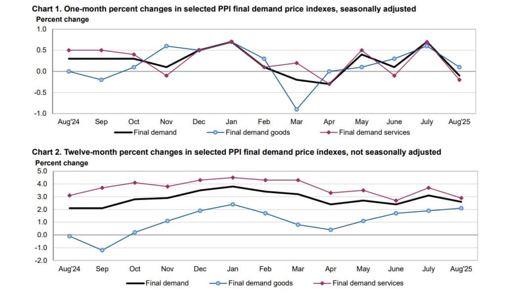 Na amerykańskim rynku znów zawrzało. Tym razem po danych o inflacji producenckiej. Sierpniowy indesk cen PPI, który miał wzrosnąć o 0,3% w ujęciu miesięcznym, niespodziewanie spadł o 0,1%. W skali roku dynamika całkowita obniżyła się do 2,6% z 3,1%. Wskaźnik bazowy również okazał się słabszy od oczekiwań, hamując do 2,8%. W efekcie sektor technologiczny znalazł się na wzrostowej fali, dolar osłabł, a Bitcoin wzrósł, zbliżając się do 114 tys. USD.