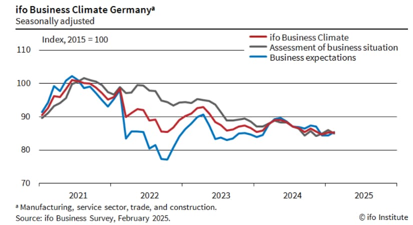 Oczekiwania ekonomiczne wg. IFO w Niemczech 85,4 (prognoza 85, poprzednia 84,2, skorygowane do 84,3)