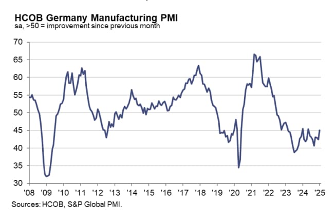 Dane PMI z Europy (ostateczne, za styczeń 2025)