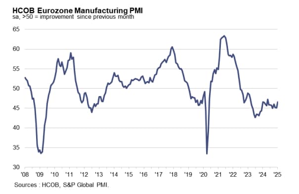 Wskaźnik PMI dla przemysłu strefy euro: 46,6 pkt (poprzednio 46,1)