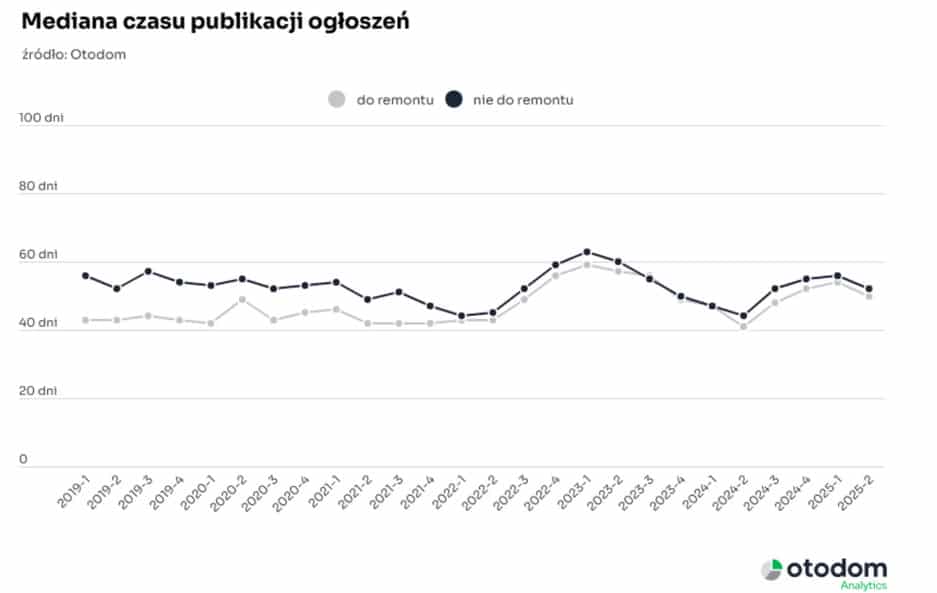 Choć intuicja podpowiada, że to wykończone mieszkania powinny sprzedawać się najszybciej, rzeczywistość okazuje się inna. Dane pokazują, że lokale określone jako „do remontu” znikają z rynku szybciej – średnio w 50 dni – niż te w lepszym stanie technicznym. Powód? Inwestorzy i flipperzy dostrzegają w takich nieruchomościach duży potencjał do podniesienia ich wartości po modernizacji.