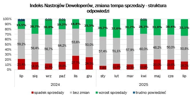 Jedynie 11,5% spodziewa się podwyżek, a 8,5% obniżek cen. Co trzecia firma liczy na poprawę sprzedaży w nadchodzących kwartałach. Ma to być raczej spokojny powrót popytu niż nagłe odbicie. Kupujący z kolei patrzą na rynek z większym sceptycyzmem. Ponad połowa spodziewa się spadków.