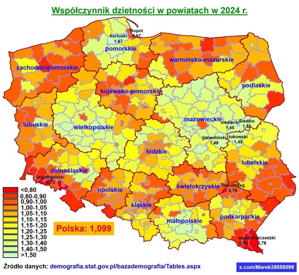 W 2024 roku w Polsce urodziło się zaledwie 248 tys. dzieci – najmniej w powojennej historii. Współczynnik dzietności wynosi dramatycznie niskie 1,16. Już dziś wiadomo, że w 2030 roku będzie nas o ponad pół miliona mniej niż dekadę wcześniej. To nie jest prognoza – to matematyczna konieczność.