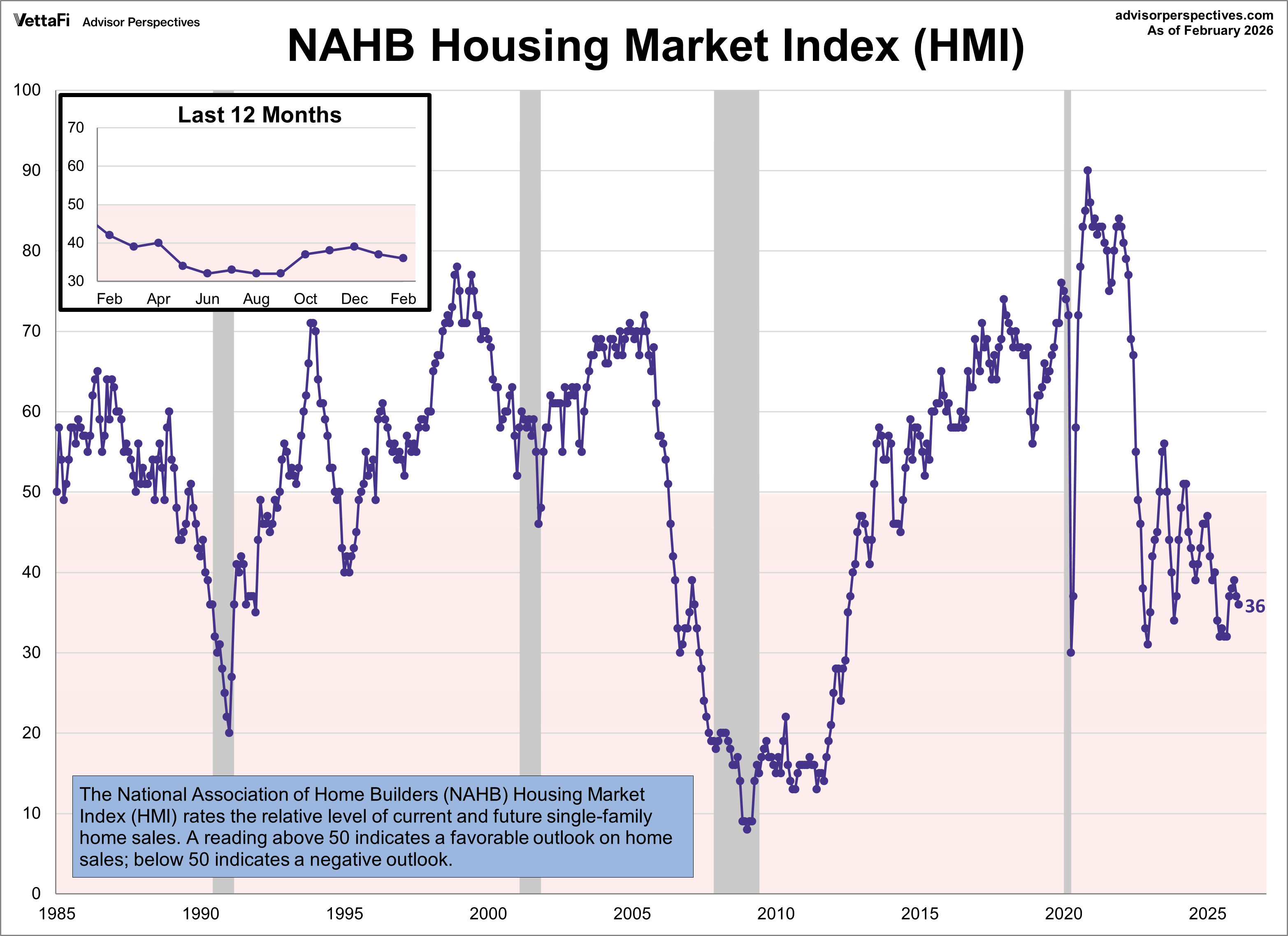 Historyczna seria danych NAHB sięga 1985 roku, a obecne poziomy lokują się blisko minimów obserwowanych w okresie pandemii.
