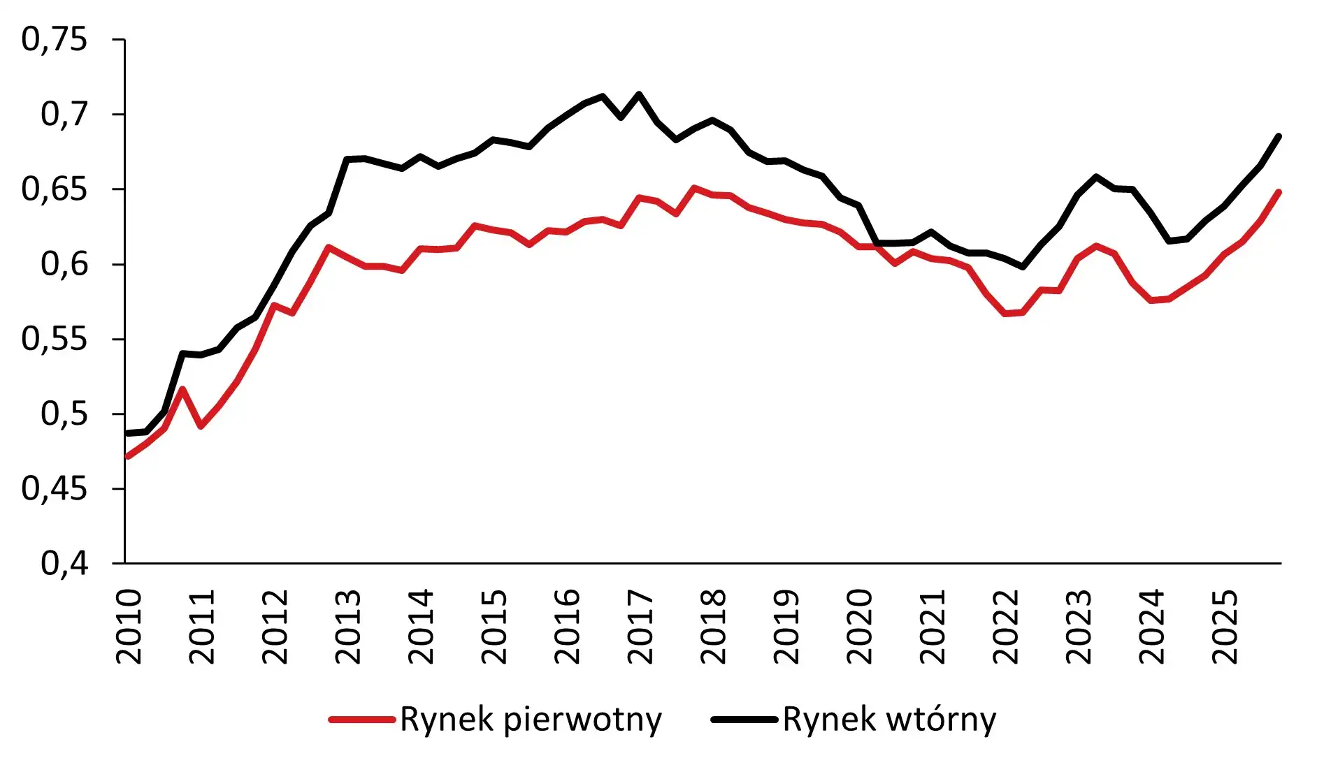 Specjaliści zaznaczają jednak, że dla większości kupujących kluczowa pozostaje zdolność kredytowa, a nie tylko cena jednostkowa. Mimo że stopy procentowe wciąż wykazują tendencję spadkową, ich poziom nadal jest wyższy niż w złotych latach 2018-2019, co hamuje pełny entuzjazm po stronie popytowej.