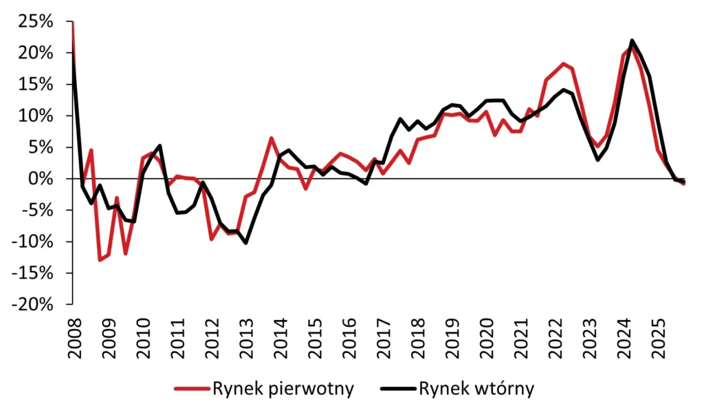 Zjawisko to jest o tyle unikatowe, że ostatnia taka korelacja na rynku pierwotnym i wtórnym miała miejsce w drugim kwartale 2013 roku. Według najnowszych wyliczeń ceny na rynku pierwotnym obniżyły się o 0,8 procent rok do roku, podczas gdy rynek wtórny zaliczył spadek rzędu 0,4 procent. Choć w ujęciu procentowym liczby te mogą wydawać się skromne, stanowią one wyraźny sygnał zmiany trendu, który dominował w polskiej gospodarce przez ostatnie lata hossy.