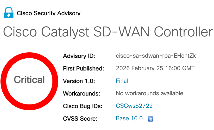 Wczoraj, 25 lutego 2026 roku, firma Cisco potwierdziła istnienie krytycznej luki bezpieczeństwa oznaczonej jako CVE-2026-20127, która pozwalała hakerom przejmować pełną kontrolę nad kluczowymi elementami sieci komputerowych. Tego samego dnia amerykańska agencja CISA uznała sytuację za na tyle poważną, że wydała pilną dyrektywę awaryjną Emergency Directive 26-03 i dodała podatność do katalogu Known Exploited Vulnerabilities, czyli listy luk, które są aktywnie wykorzystywane przez atakujących.