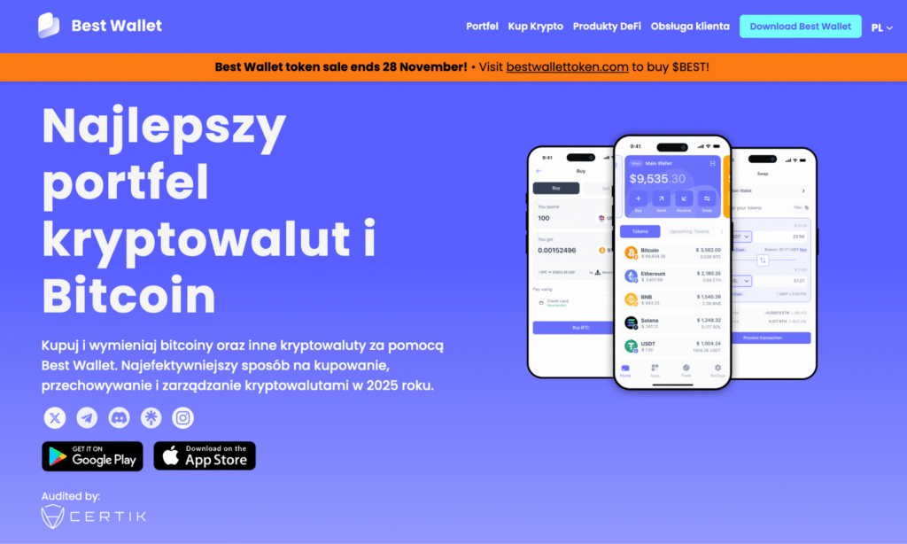 Tokeny $BEST, które do 28 listopada można nabyć w przedsprzedaży, stanowią przepustkę do wszystkich funkcji oferowanych przez łatwy w obsłudze, bezpieczny i niepowierniczy portfel kryptowalut Best Wallet.