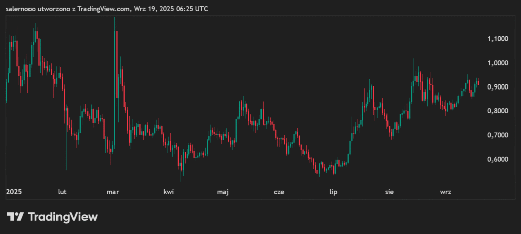 Na jego entuzjazm nałożyła się też informacja, że SEC zatwierdziła ETF oferujący ekspozycję na ADA obok innych dużych tokenów. W oczach Hoskinsona to niezaprzeczalny sygnał, że instytucje zaczynają patrzeć na projekt coraz poważniej. Problem? Cena Cardano nadal uparcie nie chce przebić psychologicznej bariery 1 dolara. Aktualnie wynosi około 0,91$. To wciąż o 70% mniej niż rekord z 2021 roku.