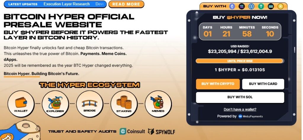 Projekt przyciąga coraz większą uwagę inwestorów – jego przedsprzedaż (presale) zebrała już ponad 23 miliony dolarów, co czyni HYPER jednym z najgłośniejszych altcoinów ostatnich miesięcy. Cena tokena rośnie z każdą rundą sprzedaży, co zachęca do wejścia przed oficjalnym listingiem.