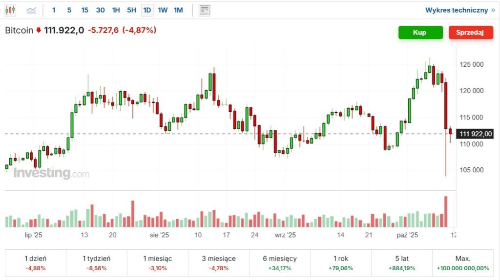 Ostatnie dni przyniosły wyraźne ochłodzenie nastrojów na rynku kryptowalut. Po dynamicznych wzrostach z poprzednich tygodni Bitcoin (BTC) gwałtownie stracił impet – jego kurs spadł z okolic 112 000 USD do nawet 102 000 USD, zanim ponownie odbił w okolice 112 000 USD. Ten ruch wywołał falę realizacji zysków i niepewność wśród inwestorów, którzy zaczęli szukać nowych okazji wśród altcoinów i projektów w przedsprzedaży.