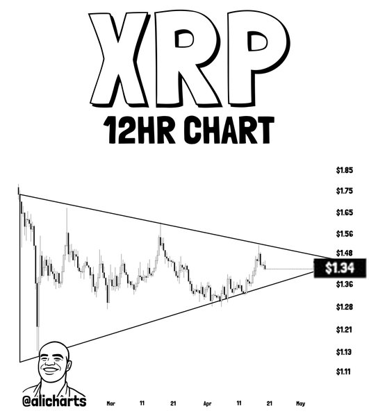 Obecna struktura trójkąta sugeruje, że XRP może przygotowywać się do znaczącego ruchu po przełamaniu. Zgodnie z tym formacją potwierdzone przebicie oporu może doprowadzić do wzrostu o około 30–35% w stosunku do obecnych poziomów.