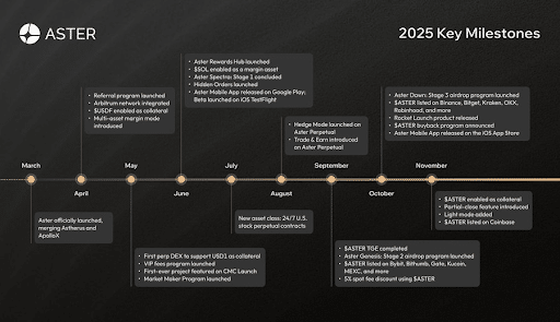 Warto zauważyć, że niedawno uruchomiona zdecentralizowana platforma wymiany (DEX) oparta na łańcuchu BNB, Aster, osiąga popularność w branży od momentu uruchomienia 31 marca 2025 r. Według najnowszej analizy projekt przekroczył wiele kamieni milowych w ciągu zaledwie kilku miesięcy działania.
