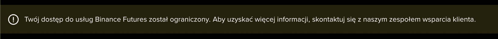 Czara goryczy przelała się 16 maja 2025 roku. To wtedy Binance wyłączyła możliwość handlu z dźwignią oraz kontraktami futures na kryptowaluty. Od tego dnia polscy użytkownicy wchodząc w zakładkę futures widzą taki komunikat: