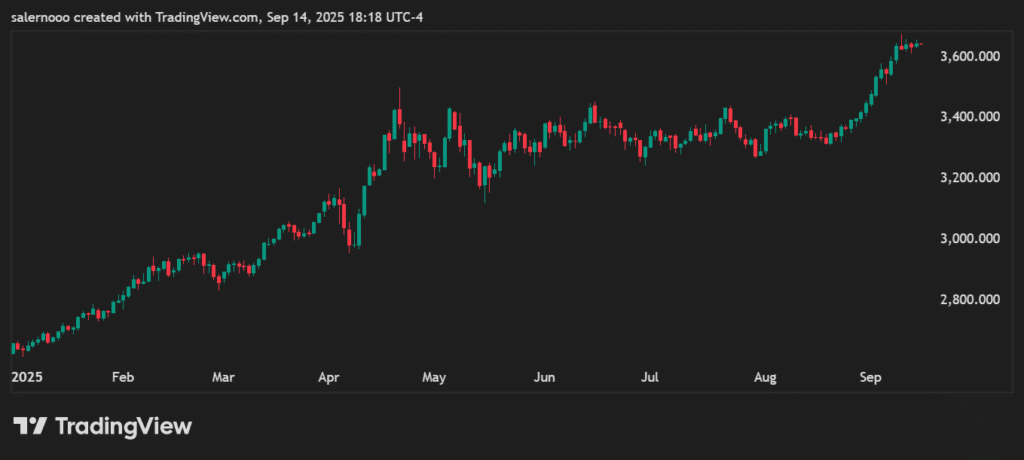 Gundlach zwrócił uwagę, że kruszec radzi sobie w tym roku lepiej niż większość aktywów. „Bitcoin wzrósł o 19%, ale złoto dało dwa razy więcej” – podkreślił. I rzeczywiście, metal szlachetny od kilku miesięcy jest w trendzie pionowym. Po krótkiej konsolidacji, zamiast spadków, dostaliśmy wybicie w górę. Efekt? Cena przekroczyła już 3500 dolarów, a pojedyncze sesje potrafią przynieść ruchy po 25-50 dolarów.