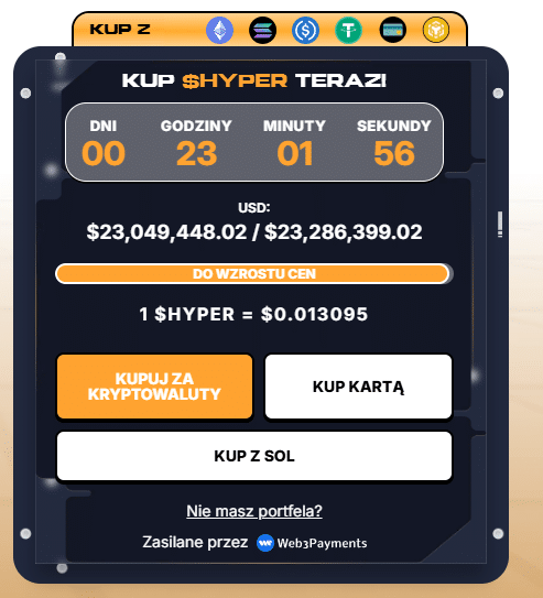Według danych z końca września, jeden z dużych portfeli („wieloryb”) zakupił ponad 62 mln tokenów HYPER o wartości ok. 833 tys. USD. Inwestor ten w kilka dni zdominował prawie 20% nowego finansowania projektu. Po jego ruchu do przedsprzedaży zaczęli dołączać gracze detaliczni, którzy – jak pokazuje historia rynku – często podążają śladem dużego kapitału.