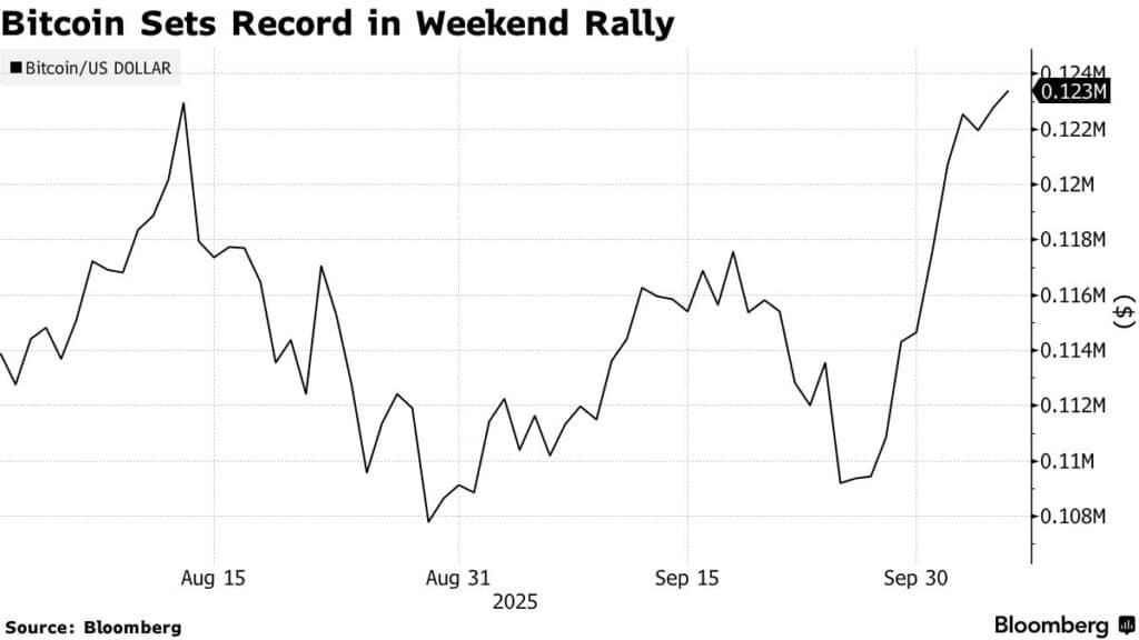 W weekend największa kryptowaluta świata znów przebiła historyczny szczyt – przekraczając 125 tys. dolarów – i choć chwilowo cofnęła się nieco w okolice 124 tys., to kierunek jest jasny: kapitał płynie tam, gdzie czuje twardy grunt pod nogami. Na tym tle waluty fiducjarne wyglądają coraz słabiej. Jen osuwa się po tym, jak Tokio szykuje się na nową falę stymulacji fiskalnej, euro traci przez polityczne tarcia we Francji, a amerykański dolar — osłabiony o niemal 30% względem Bitcoina od początku roku — wciąż cierpi z powodu przeciągającego się paraliżu rządu.