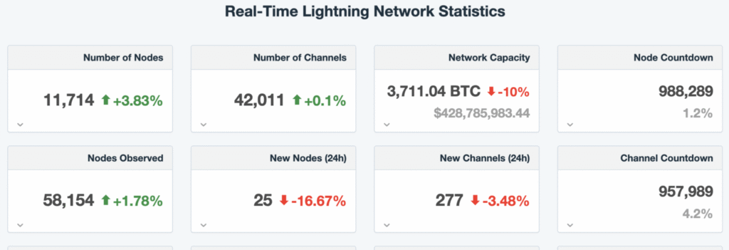Lightning Network ma dziś ponad 11 700 węzłów i 42 000 kanałów, z łączną pojemnością ponad 3 700 BTC (ok. 365 mln euro).