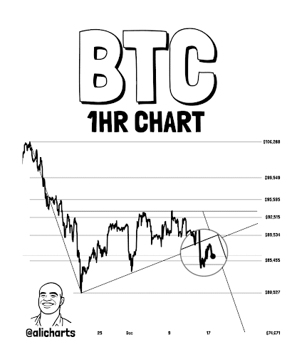 Wśród osób przewidujących spadek ceny Bitcoina jest czołowy analityk Ali Martinez. W swoim niedawnym raporcie na X, zidentyfikował zagrożenie dla cen aktywów.