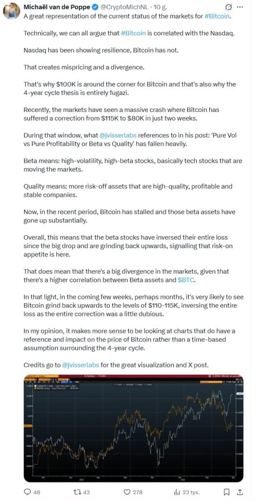 Wypowiedzi na platformie X, takie jak ta od znanego analityka Michaela van de Poppe, często podkreślają rolę amerykańskiej Rezerwy Federalnej jako głównego czynnika wpływającego na rynki, sugerując, że oczekiwanie na decyzję Fed utrzymuje inwestorów w niepewności.