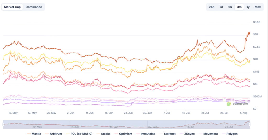 Na tle szerokiego rynku szczególnie wyróżnił się $LDO, który w ostatnim tygodniu wzrósł o 60%. To efekt rosnącego zainteresowania stakingiem Ethereum i usługami Lido DAO. Inne projekty z ekosystemu ETH, jak $AERO (+52%), $PENDLE (+33%) czy $LINK (+32%), również notowały dynamiczne wzrosty.